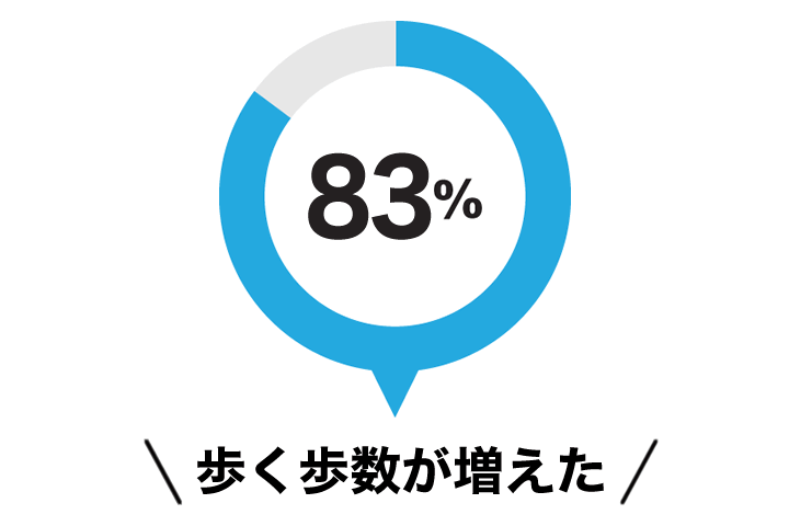 ウォーキング大会に参加された方のうち実に83.1%の方が「大会へ参加することで歩数が増えた」と回答されています。また、92.7%の人が「今後もウォーキングを継続して行いたい」と回答してくれました。