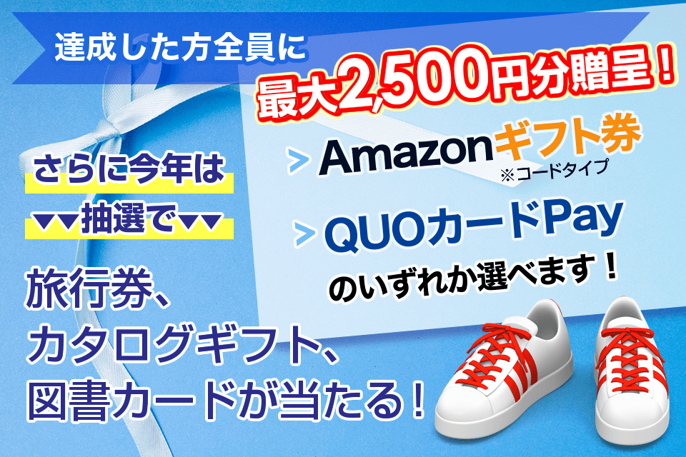 詳細は下記の「達成賞、抽選でプレゼント!」をご確認ください。